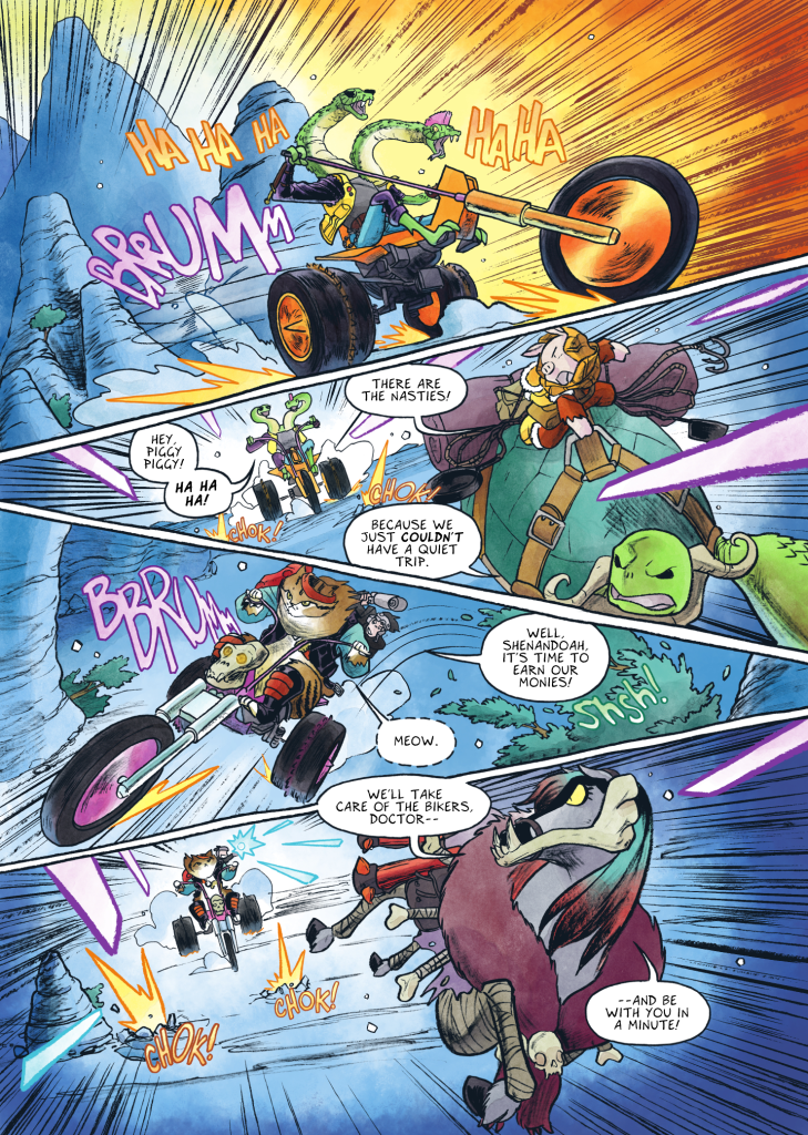 Shenandoah, Rick, and Kobros are three thugs-for-hire who Fishravin is using to help overtake the Mummy Express. I've been waiting a long time to finally make a comic with these characters.
